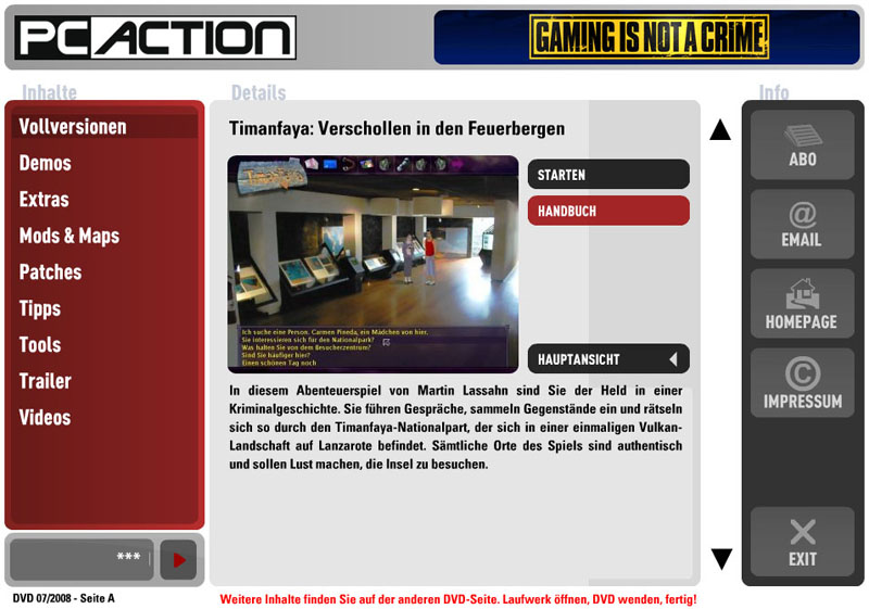 Zwar erreicht Timanfaya - Verschollen in den Feuerbergen mit rund drei Stunden Spielzeit nicht den Umfang eines Vollpreisspiels, aber eine Empfehlung für einen gemütlichen Adventure-Abend ist es allemal...zumal man kostenlos einen Abstecher nach Lanzarote machen und viel über die Insel erfahren kann."